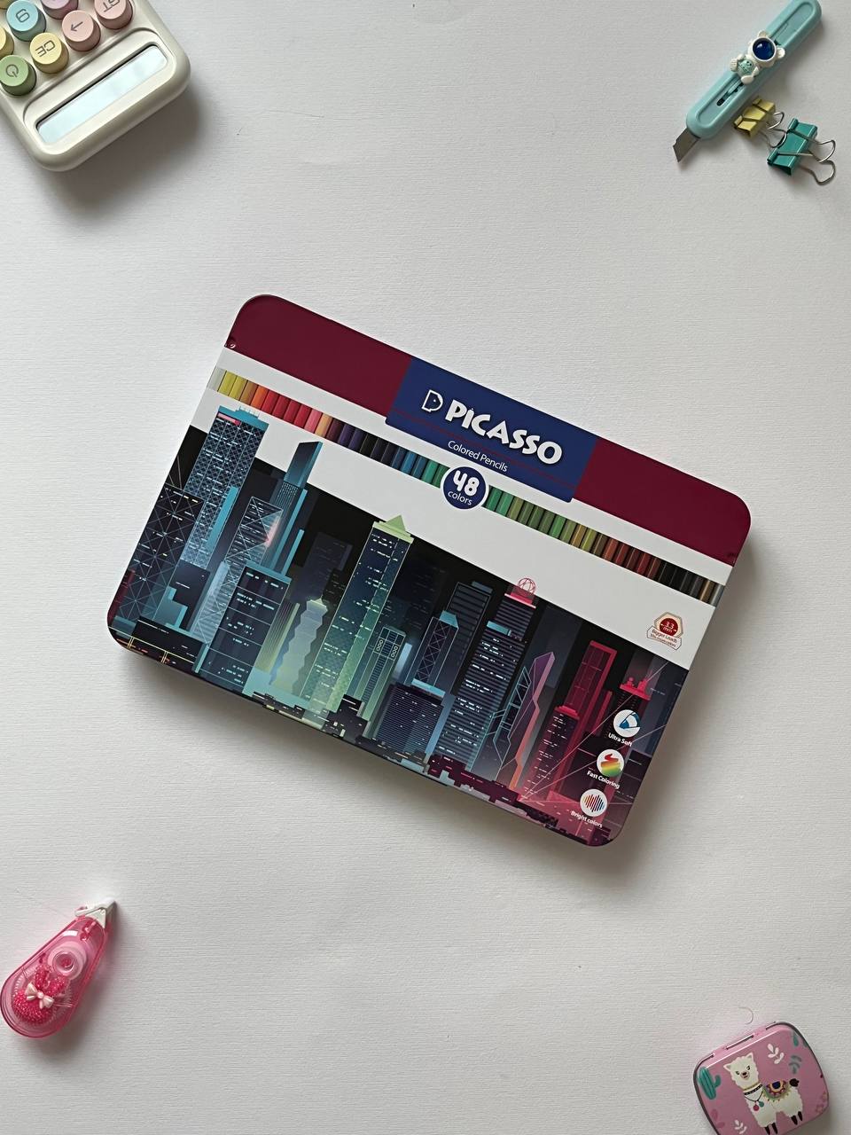 مداد رنگی ۴۸ رنگ پیکاسو | جعبه فلزی، رنگدهی عالی و نوک مقاوم