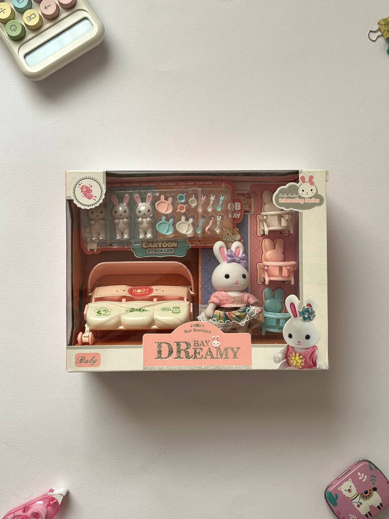 این ست اسباببازی خرگوشی، شامل عروسک خرگوش بههمراه کالسکه، صندلیها و لوازم جانبی کوچیک و دوستداشتنیه که برای بازی تخیلی و نقشآفرینی کودکان خیلی جذابه. طراحی ظریف، رنگهای ملایم و جزئیات دقیقش باعث میشه بچهها ساعتها باهاش سرگرم بشن.