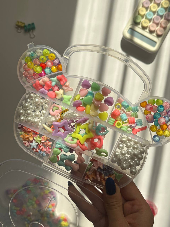 کیت ساخت دستبند کودکانه با مهره رنگی مدل کیتی، قلبی و خرسی | سرگرمی خلاقانه