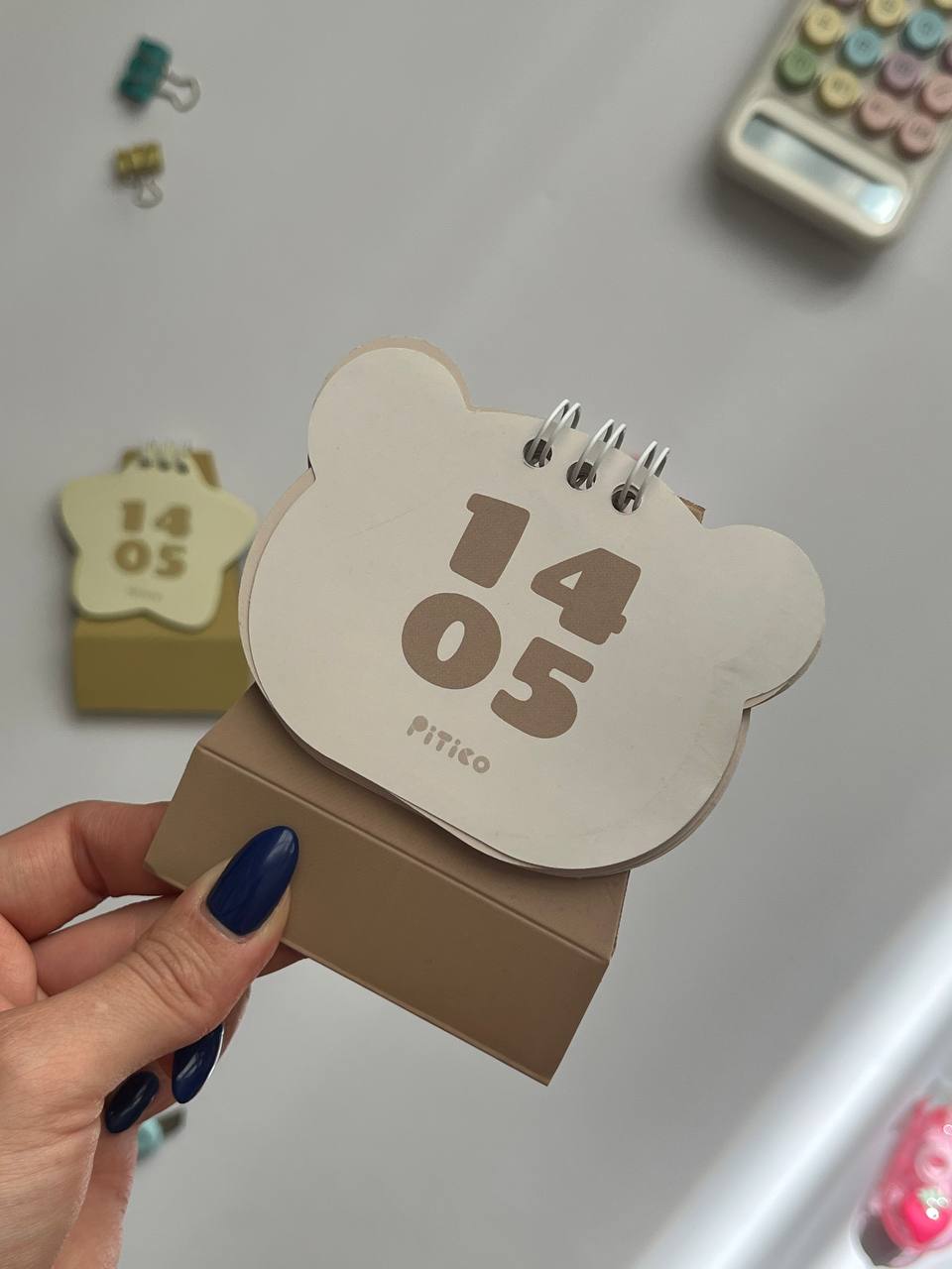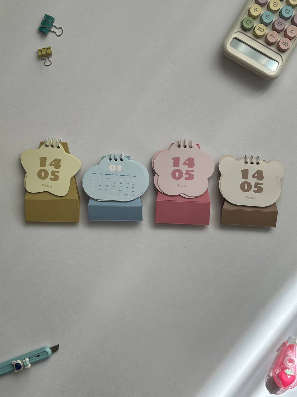 تقویم رومیزی پیتیکو با چهار طرح مینیمال و رنگهای پاستلی شامل گل صورتی، خرس قهوهای، زرد ستارهای و آبی ابری، گزینهای زیبا و کاربردی برای میز کار است. این تقویم رومیزی با ابعاد تقریبی ۱۰ × ۱۰ سانتیمتر، برای برنامهریزی سالانه و دکور مینیمال میز مناسب است