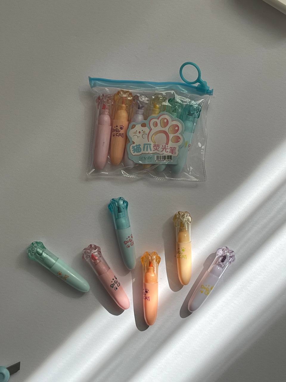 هایلایتر بستهای فانتزی با طرح پنجه گربه شامل شش رنگ جذاب است. این هایلایترهای کوچولو و فانتزی، تجربهای سرگرمکننده و رنگی برای علامتگذاری و هایلایت کردن یادداشتها ایجاد میکنند و گزینهای جذاب برای کودکان و نوجوانان هستند.