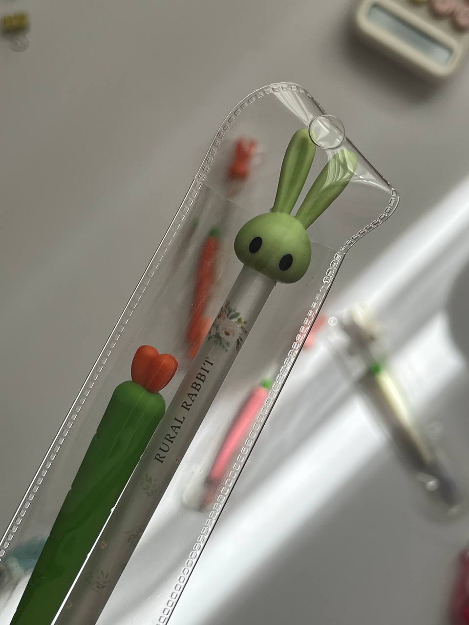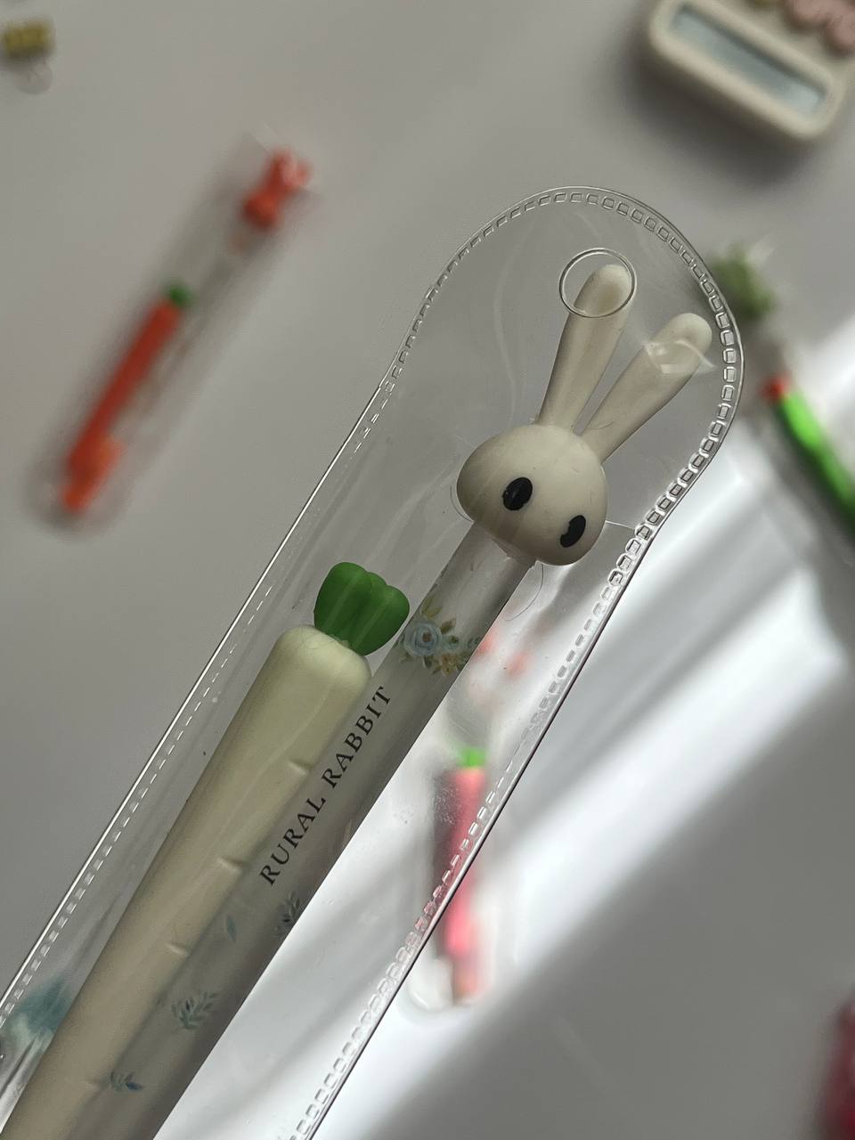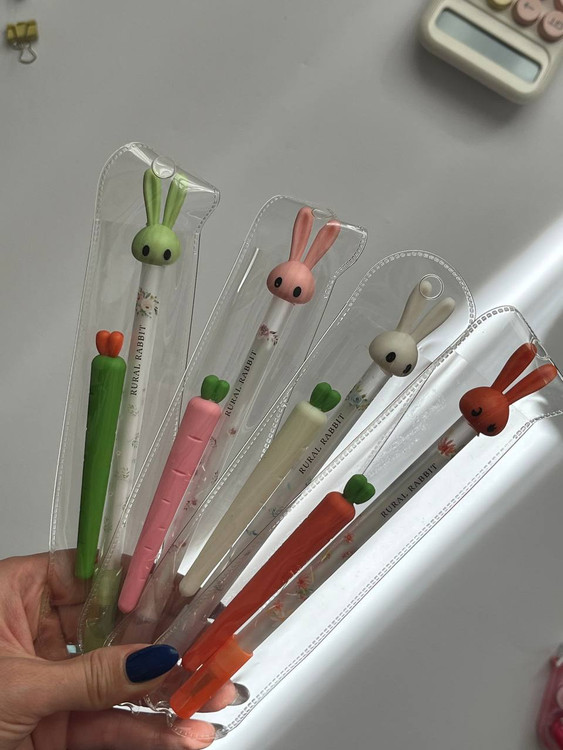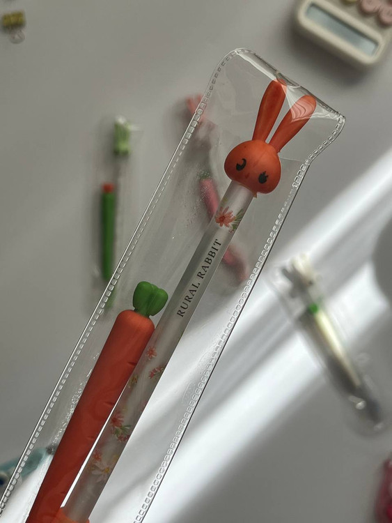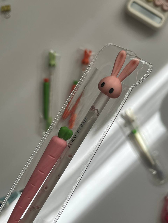 بالای قلم یک خرگوش بامزه قرار دارد و کنار آن یک هویج پاککنی تعبیه شده که دقیقاً نوشتهها را پاک میکند.
