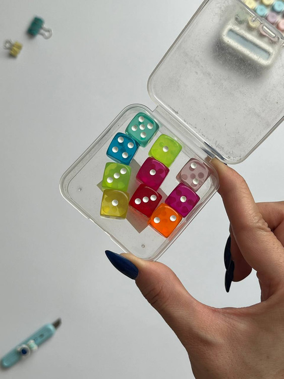 این جعبه شامل ۱۰ عدد تاس است و گزینهای کاربردی برای انواع بازیهای رومیزی و بازیهای فکری محسوب میشود. تاسها برای استفاده در بازیهای گروهی، سرگرمیهای خانگی و بازیهای آموزشی مناسب هستند و داشتن چند تاس کنار هم، بازی را راحتتر و کاملتر میکند. یک انتخاب ساده و کاربردی برای دوستداران بازی