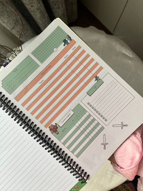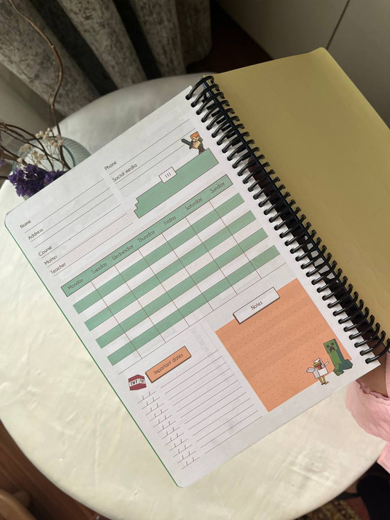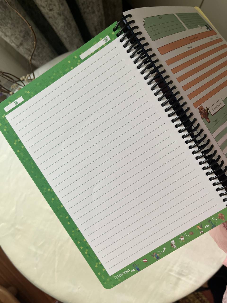 دفتر جلد سخت ماینکرافتی برند لانگو، انتخابی جذاب و کاربردی برای طرفداران طرحهای ماینکرافتی است. این دفتر با کاغذ ۸۰ گرمی و ابعاد ۱۶.۵ × ۲۳ سانتیمتر طراحی شده و در ابتدای آن یک برگه برچسب با طرح ماینکرافت قرار دارد. صفحات ابتدایی شامل بخشهای برنامهریزی مانند روزهای هفته، یادداشتها و لیست کارها هستند. تمام صفحات دفتر دارای حاشیه ریز با طرح ماینکرافت یکسان هستند که ظاهر دفتر را خاص و جذابتر میکند. این دفتر برای مدرسه، برنامهریزی و یادداشتهای روزمره بسیار مناسب است.