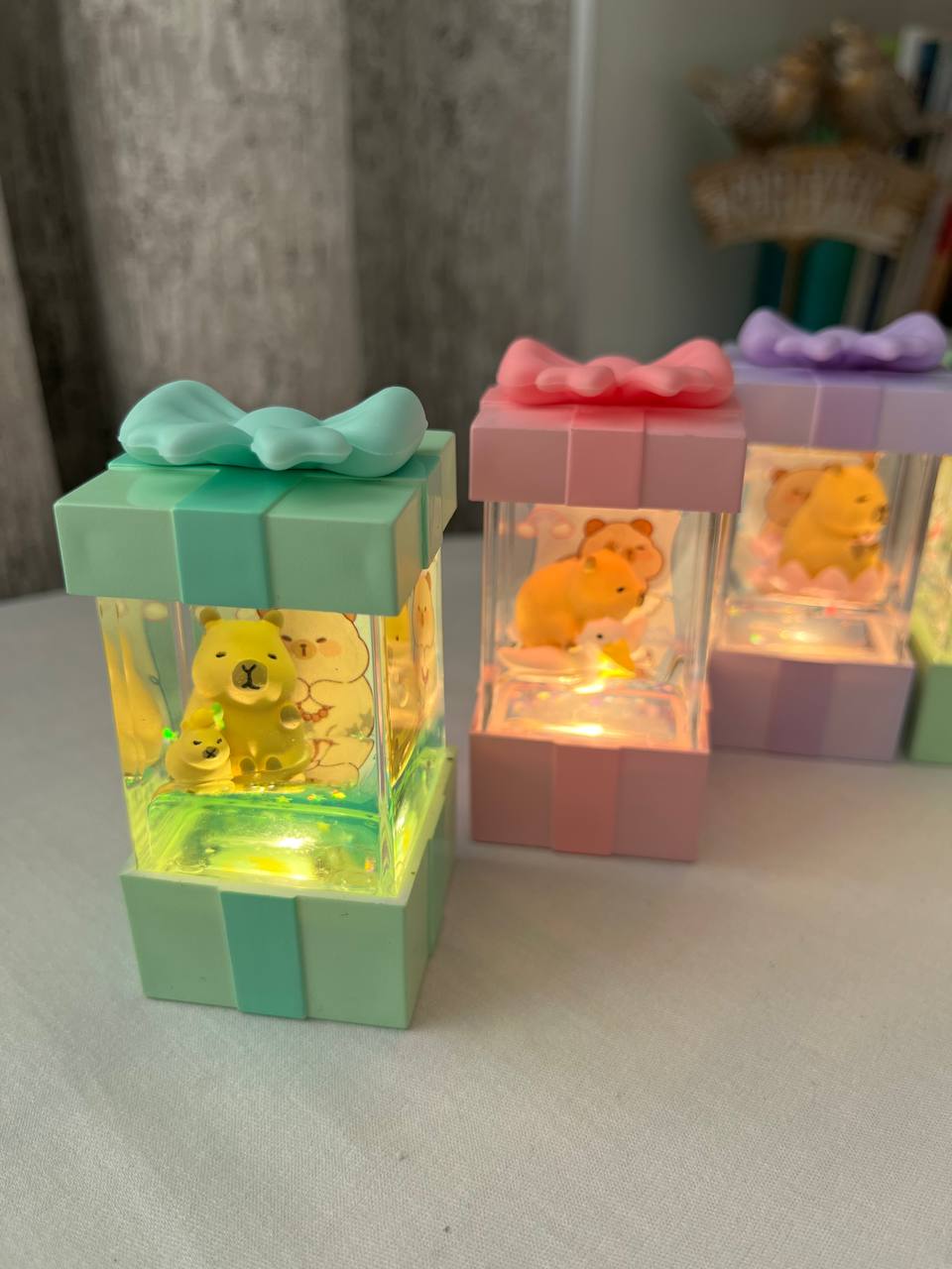 گوی فانتزی باکس چراغ‌دار طرح کاپیبارا و سانریو – 7.5×4×4 سانتی‌متر