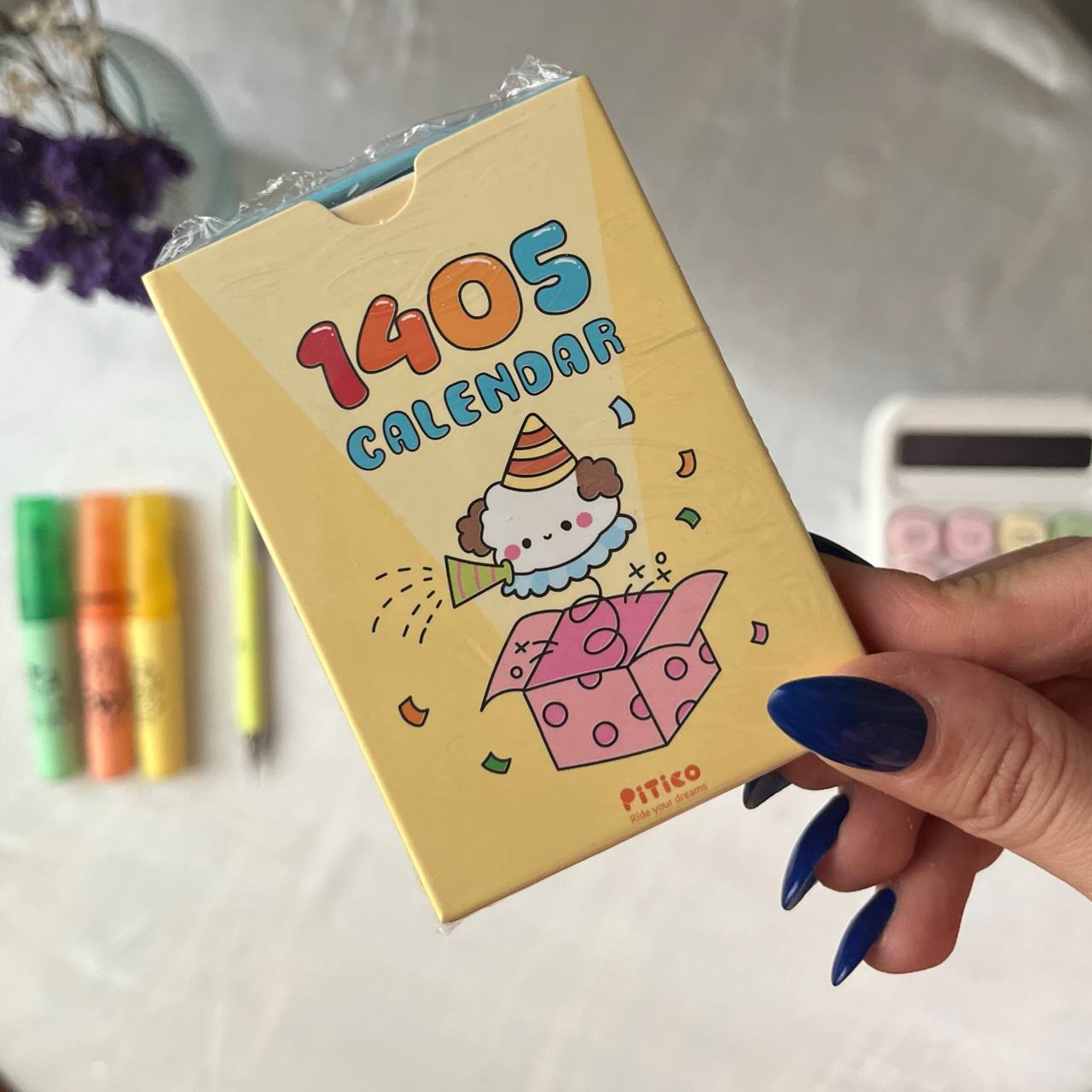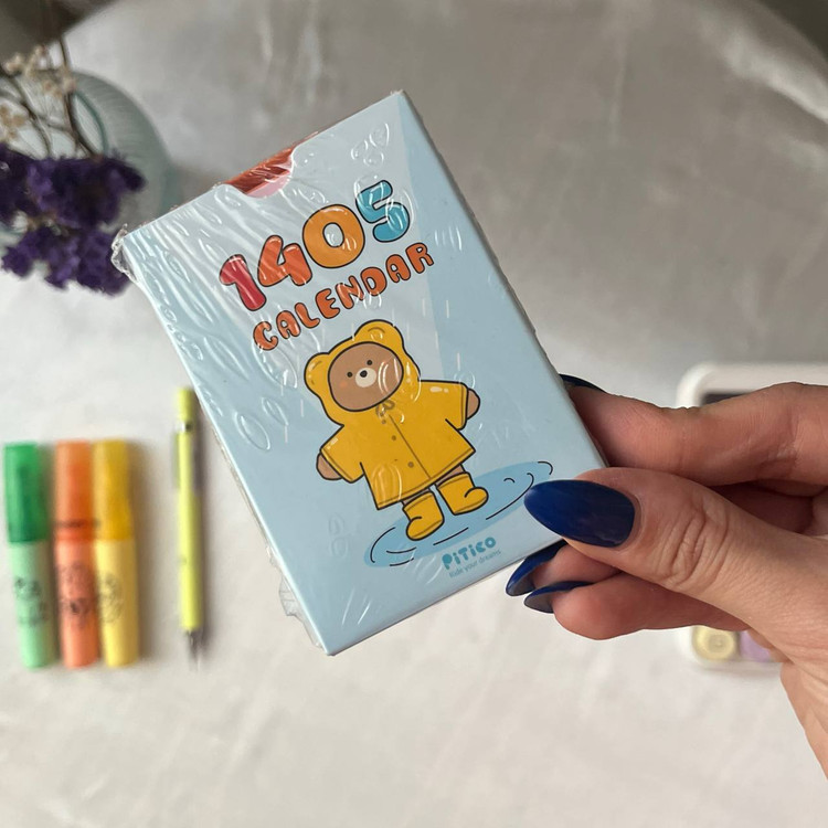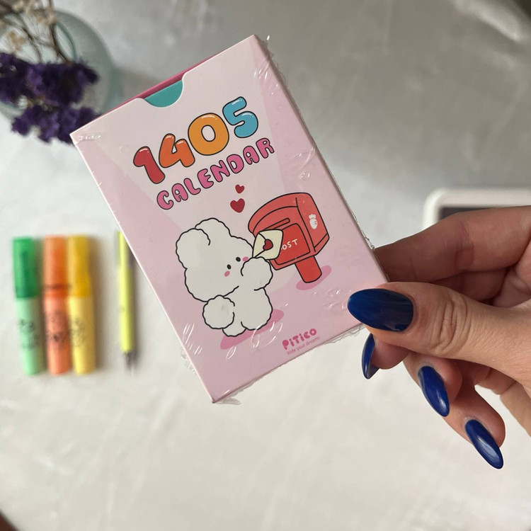 این تقویم فانتزی کارتی از برند پیتیکو، هر ماه روی یک کارت طراحی شده و مناسبتها پشت کارت نوشته شدهاند. میتوانید این کارتها را به راحتی روی قاب گوشی، دفتر، یخچال یا هر سطح دلخواه بچسبانید و سال نو را به روشی سرگرمکننده و کاربردی برنامهریزی کنید. این محصول ترکیبی از دکور فانتزی و ابزار مدیریت زمان است.