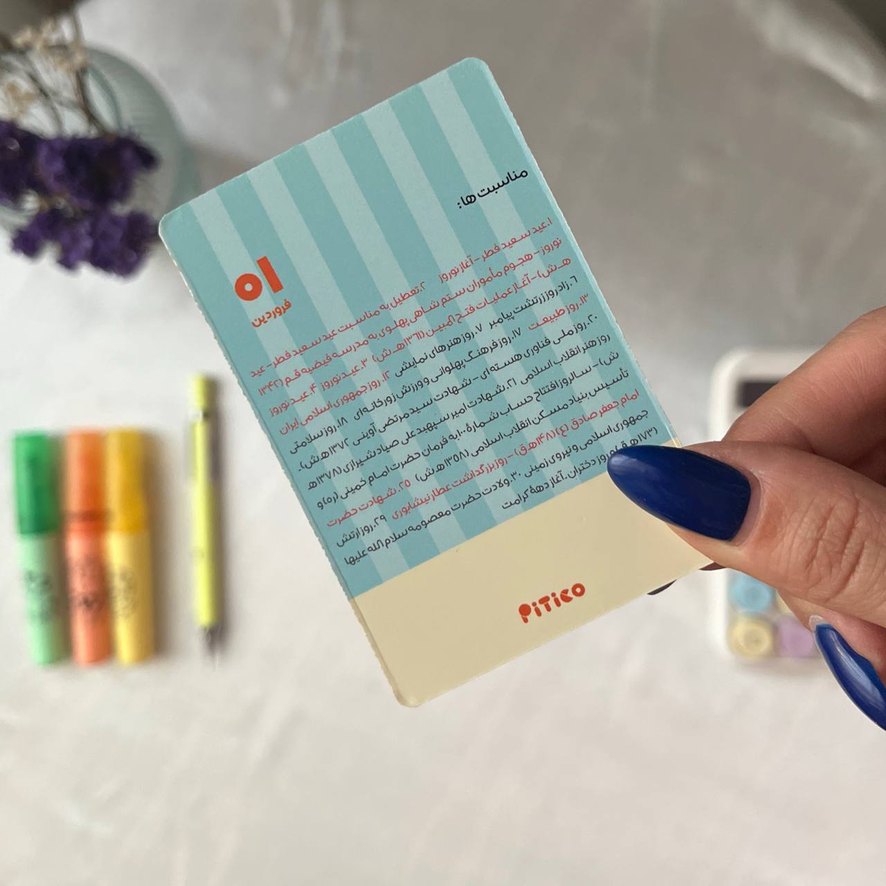هر ماه روی یک کارت، مناسبتها پشت کارت، قابل چسباندن روی سطوح مختلف