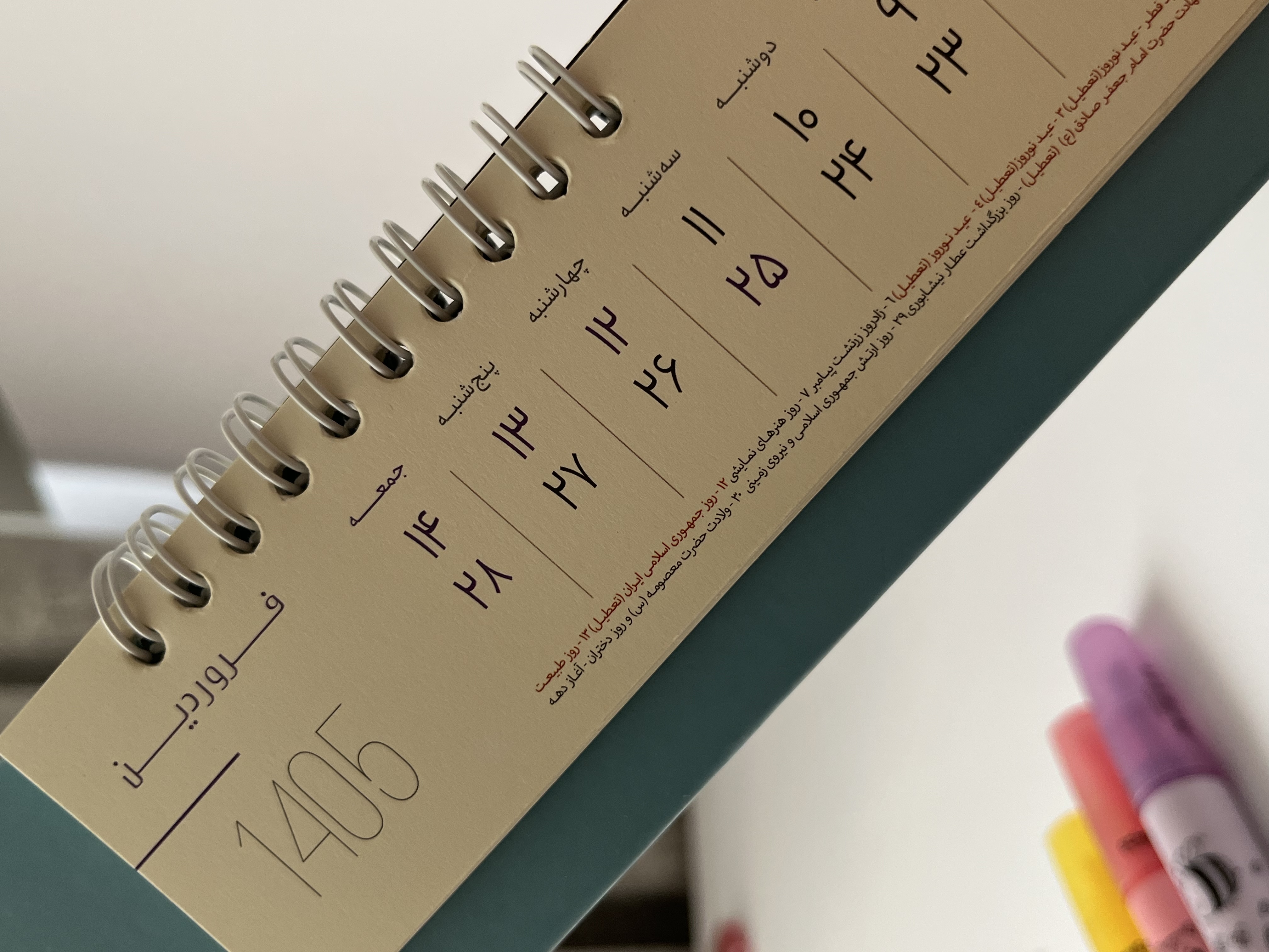 تقویم باریک رومیزی سال ۱۴۰۵ طراحی مینیمال