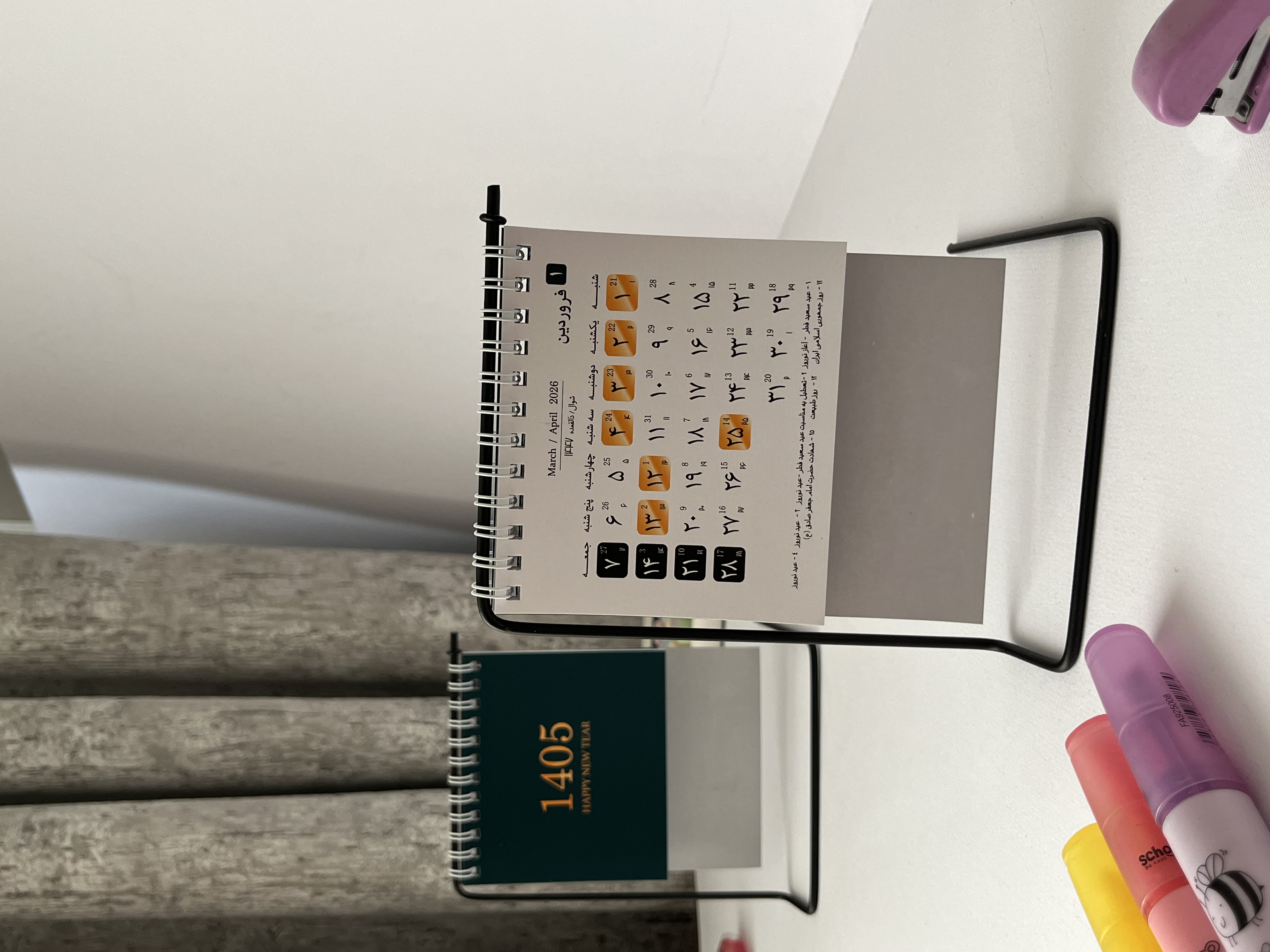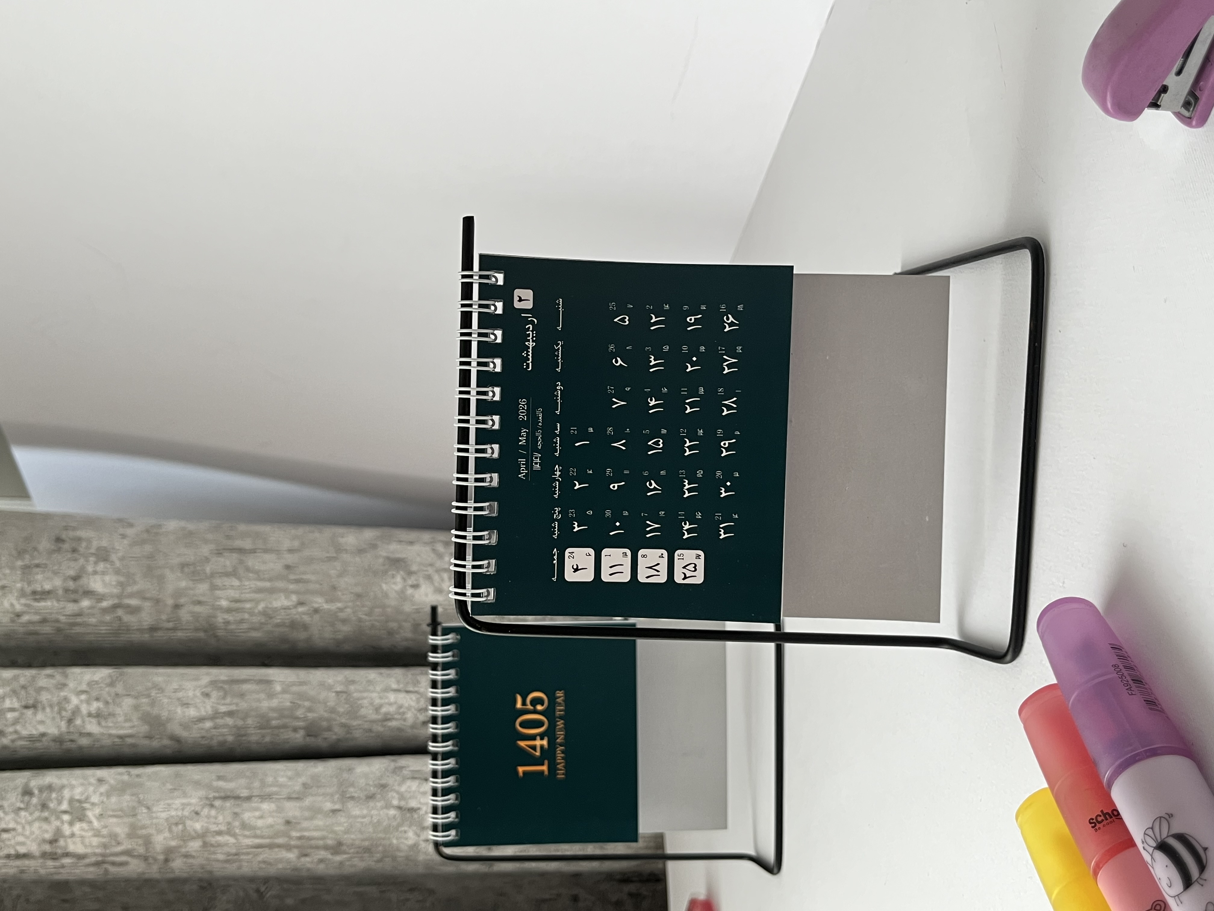 اقلام همراه: پایه ی فلزی همراه با واشر مشکی برای ثابت نگه داشتن فنر تقویم