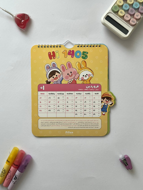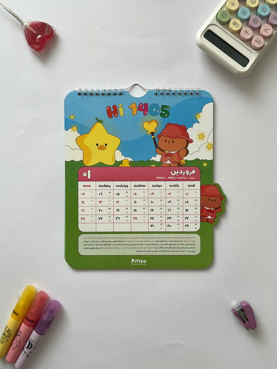 تقویم دیواری ۱۴۰۵ با طرح های کودکانه