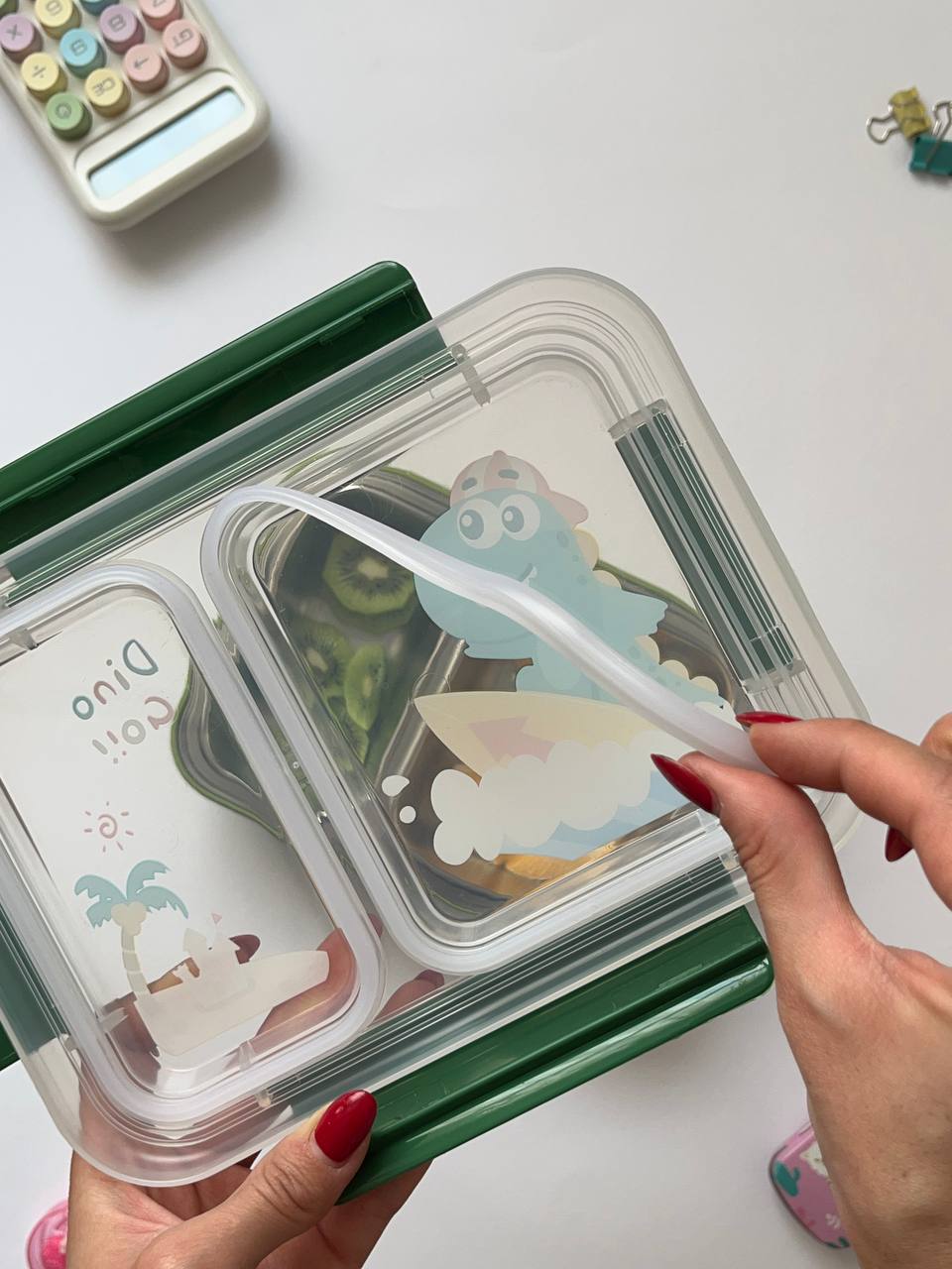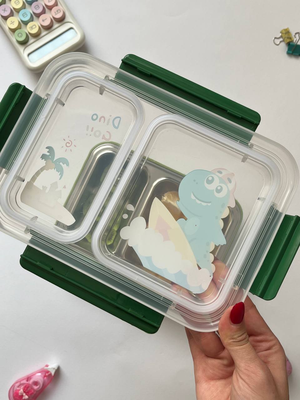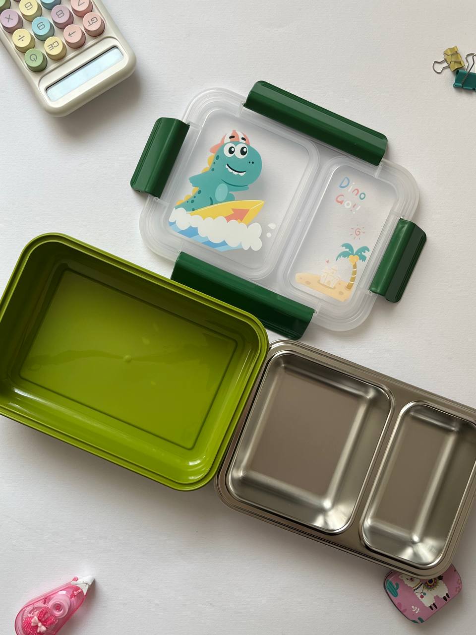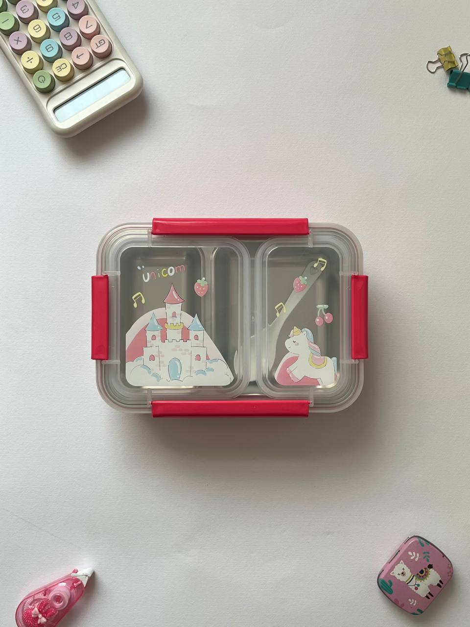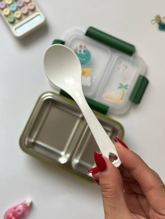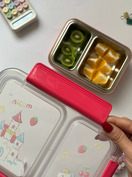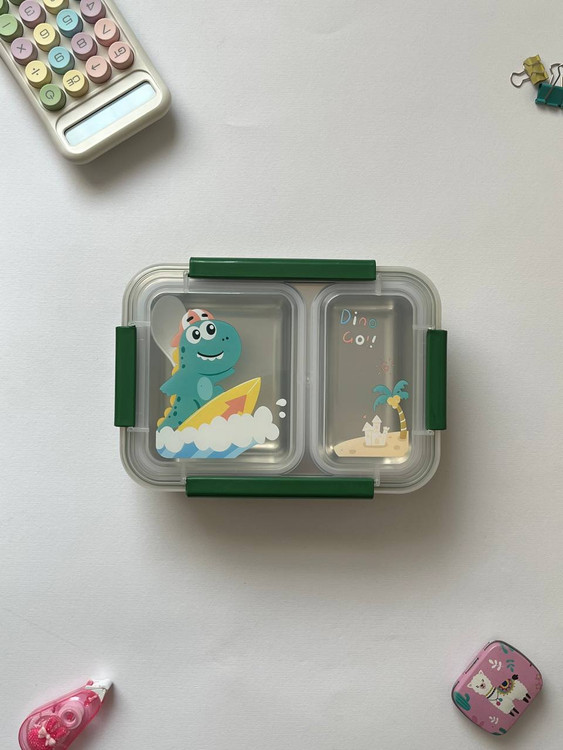 ظرف غذای دوقسمتی استیل بچگانه | ضد نشتی | طرح تک‌شاخ / دایناسور